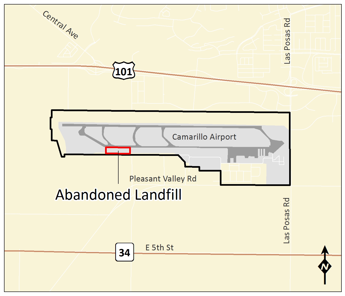 The Abandoned Landfill project comprises nearly 4.6 acres on the western portion of the Camarillo Airport property. Based on site plans and historical aerial photographs of the airport; USACE suspects that burning and disposal of ordnance and explosive waste materials occurred in this area.